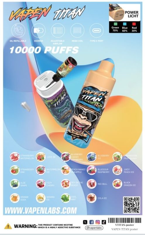 VAPEN TITAN-X 30kVAPEN TITAN‑X — 30ml refillable, 650mAh Type‑C, compact.Shop Now